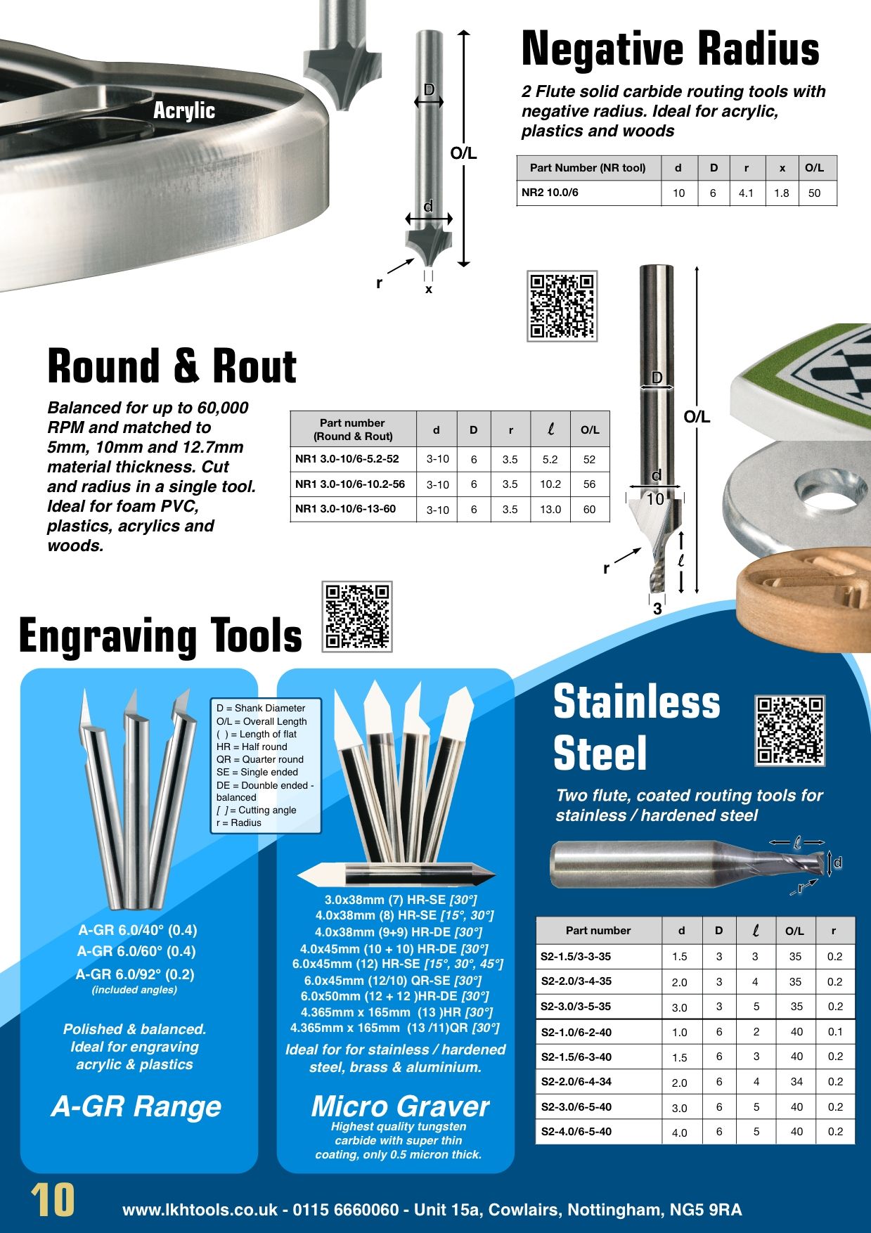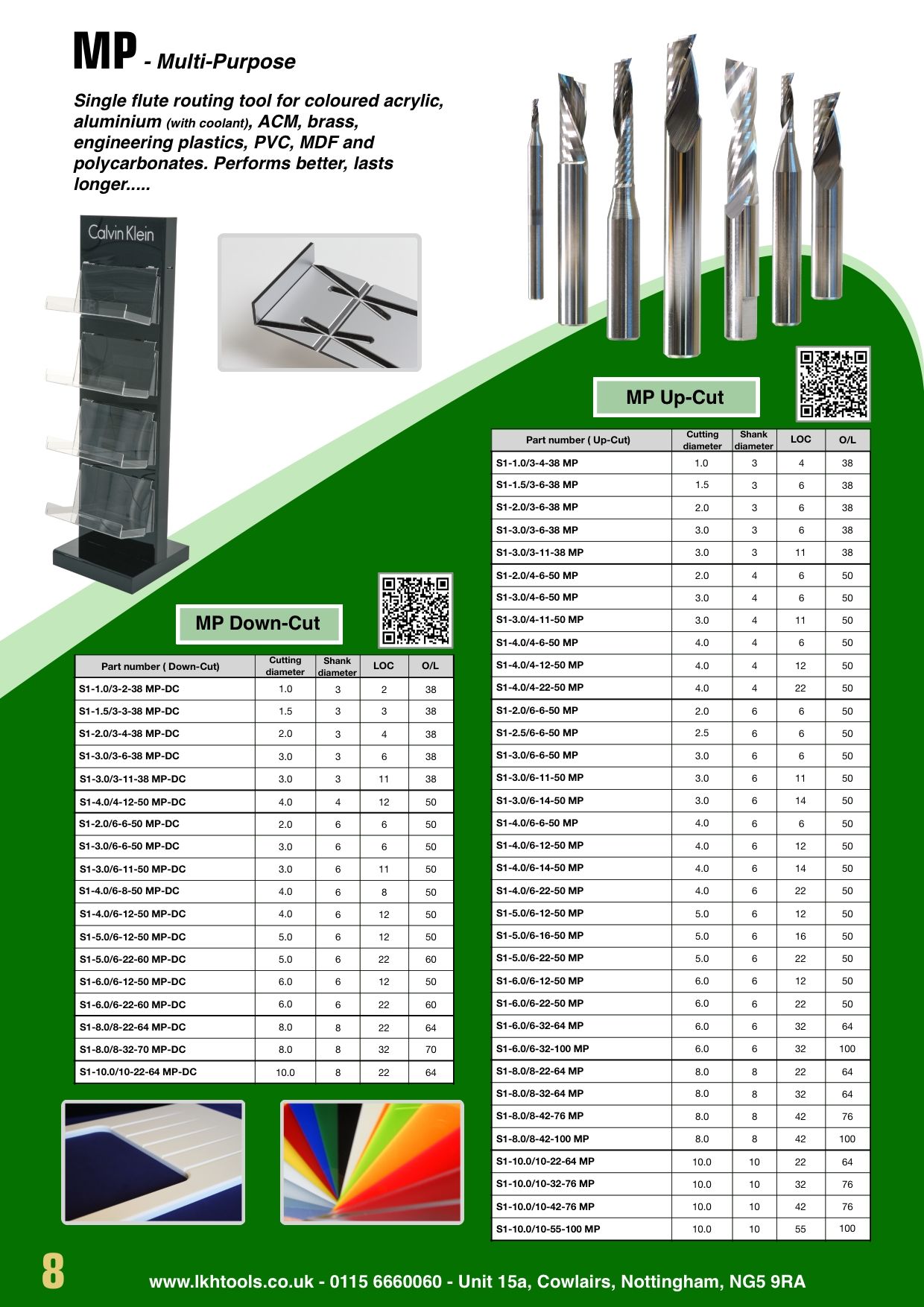 This includes MP Superior, MP DLC, ACM folding tools, Acrylic, Multi-Purpose range, engraving tools etc. For individual sections of the catalogue, please click on the header to download the required section.