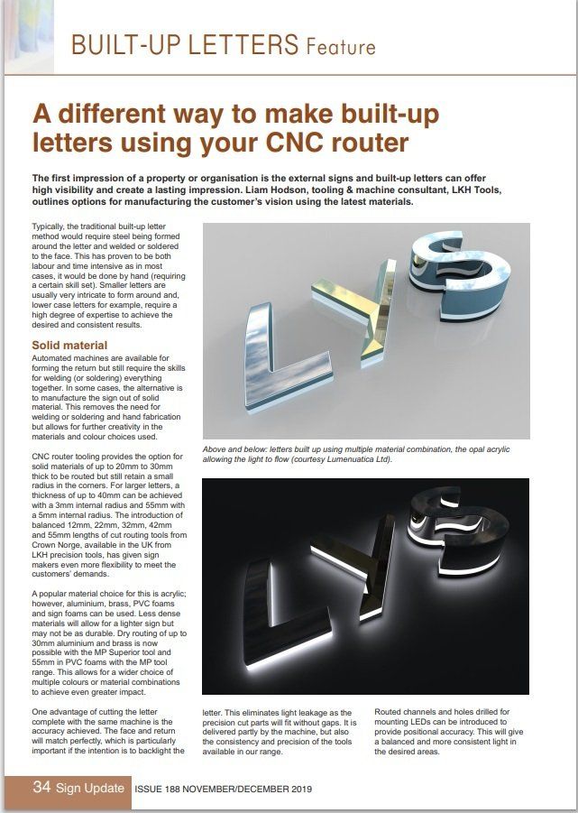 With all the common sizes and dimensions of router tooling stocked at the UK office in Nottingham, LKH Tools offers next working day delivery. This is invaluable for meeting tight deadlines when production has come to stand still due to unforeseen circumstances. Customers also have the option to collect in person. This also allows them to visit the showroom for advice, inspiration and to fine tuning and expand their CNC routing knowledge.